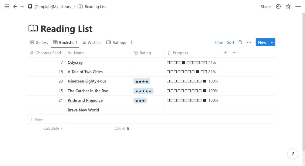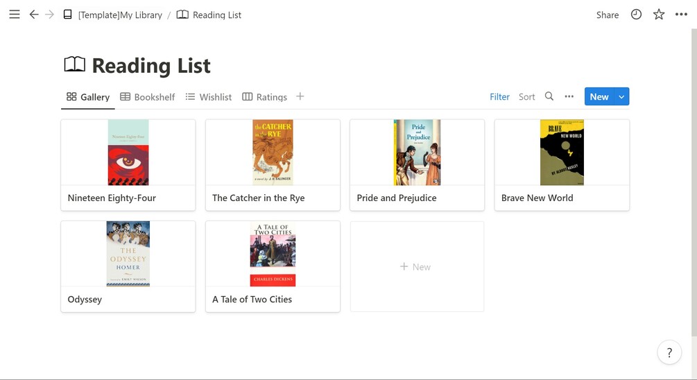 This template is a reading list database that capture books to read, reading, wish-listed and finishes