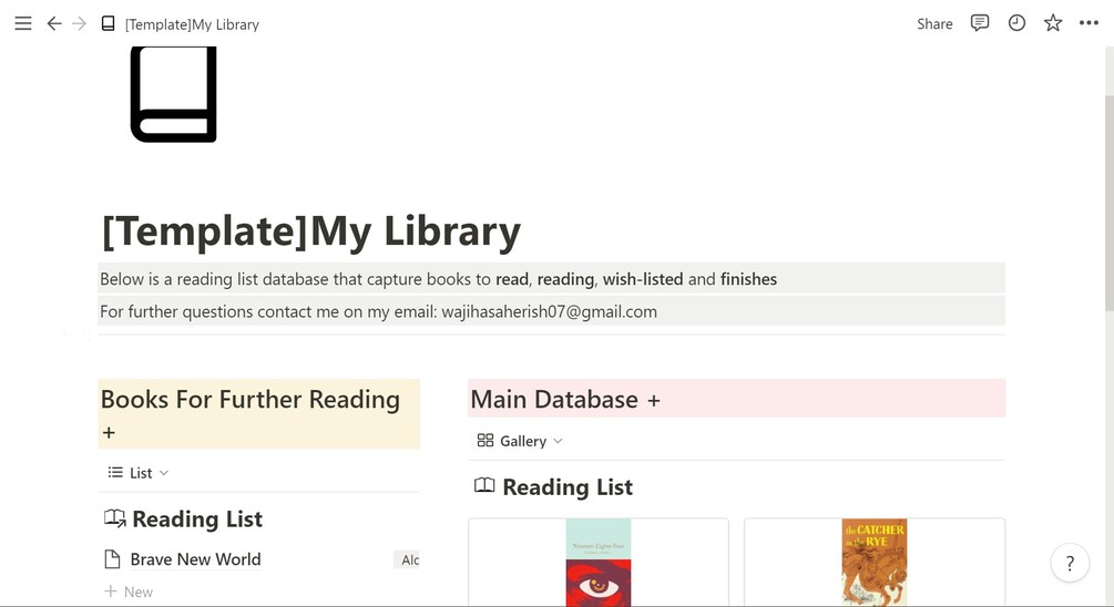 Notion template for my library