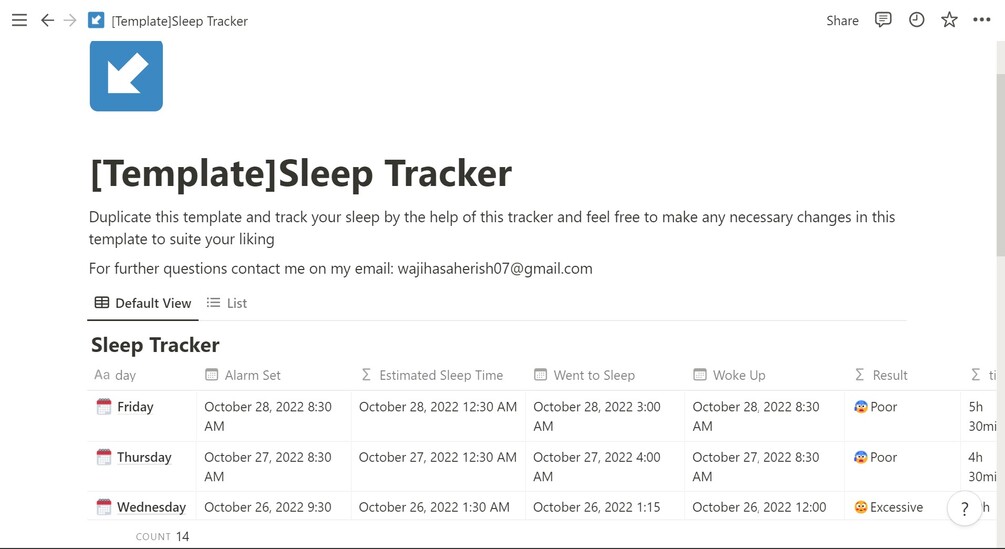 A good amount of sleep is really important for better functioning of the brain and body. Track your sleep by the help of this easy and simple sleep tracker template