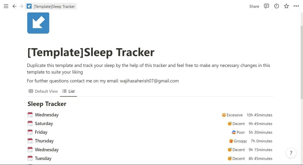 Easy to use and beginner friendly sleep tracker template to track your sleep and maintain a healthy life style. Track your dreams and the amount of time you have slept. Feel free to make any changes in the tracker if required. Happy tracking!